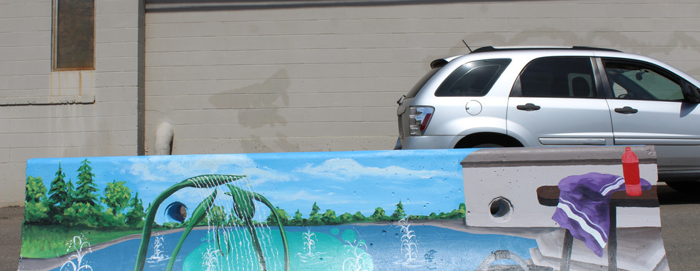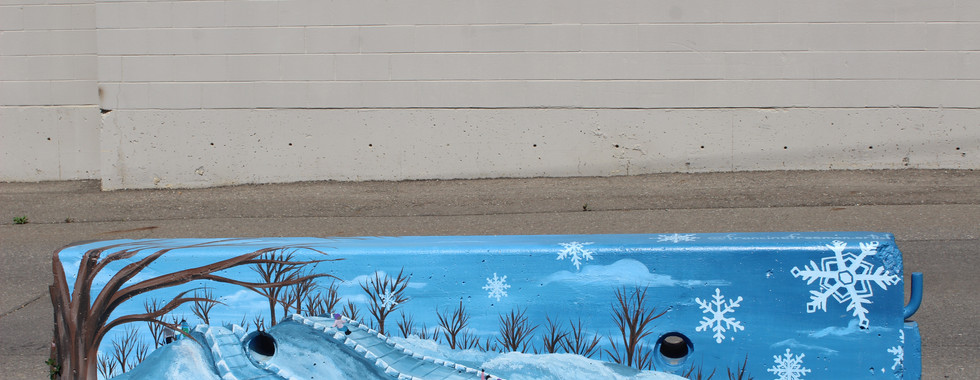 Freeman has created the Parker Lake Wildfire mural on a Seacan in Fort St. John, a series of 6 concrete barrier murals at the Fieldhouse Arena, and a series of 12 concrete barrier murals in the heart of downtown.