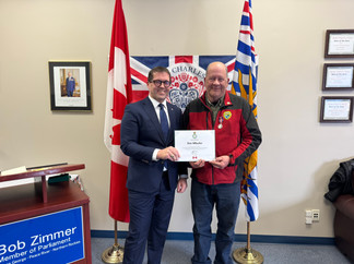 Bob Zimmer presented the 2025 King Charles III’s Coronation Medals to recipients at an event which took place at his office in Fort St. John on March 18.